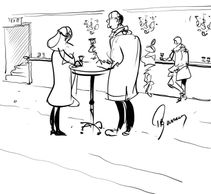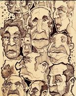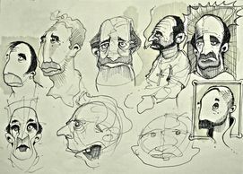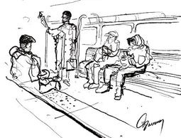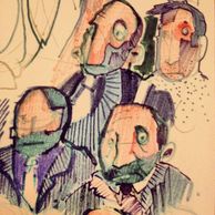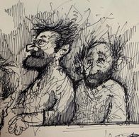 People on my travels. Usually in crowded places where I can just watch. Sometimes I draw them on the spot. Other times, they come to me weeks or months later while I'm in a meeting or on the phone.