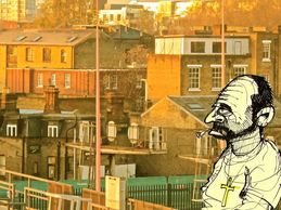 The buildings behind Nick are from a pic I took out of window of an office in Hollyrood Street, London.